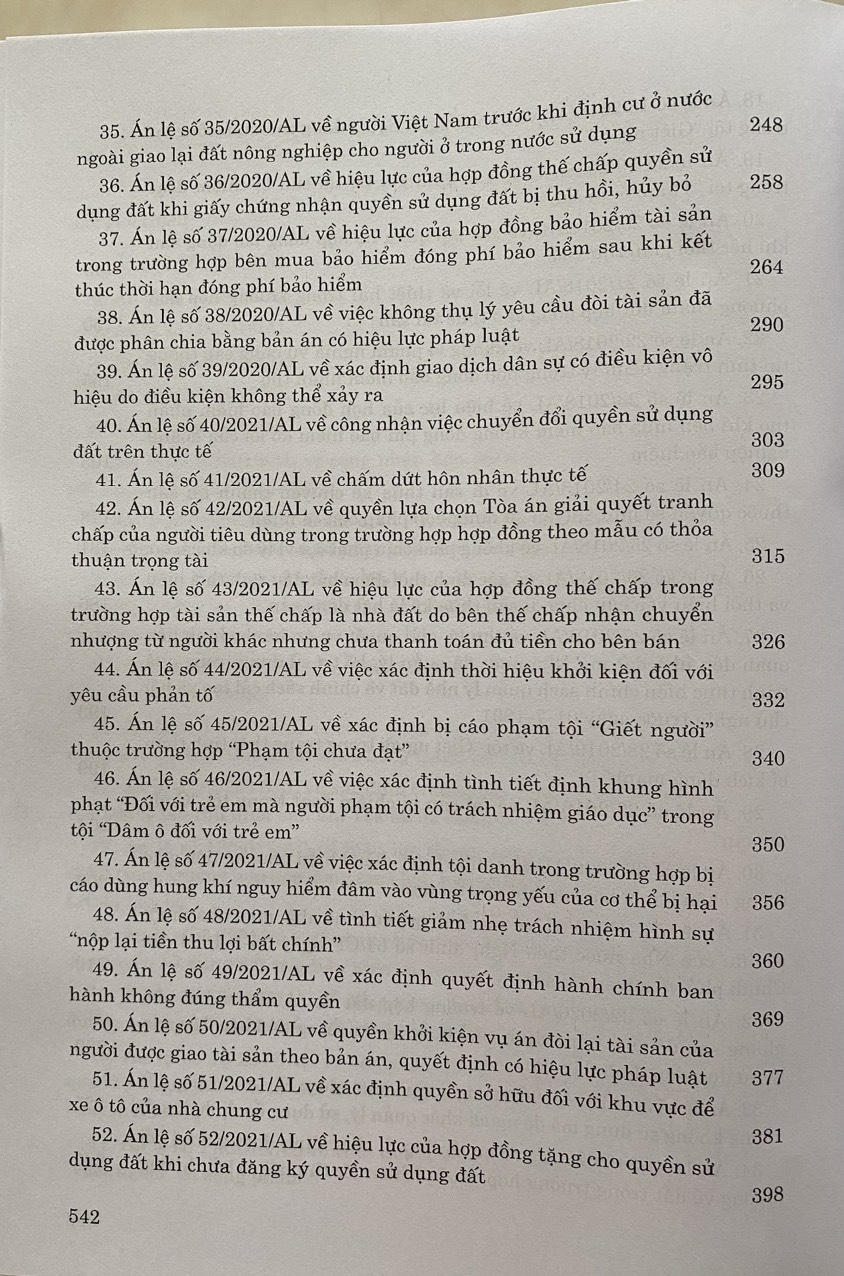 Để thuận tiện cho việc nghiên cứu, tìm hiểu, vận dụng án lệ trong quá trình thực hiện nhiệm vụ xét xử của Tòa án; giúp các cơ quan, tổ chức, cá nhân quan tâm tới hoạt động của Tòa án có thể tiếp cận với các án lệ đã ban hành; tạo nguồn tham khảo cho các hoạt động giảng dạy, nghiên cứu khoa học của các cơ quan, tổ chức, cá nhân, Nhà xuất bân Lao Động cho xuất bản và phát hành cuốn: "Hệ thống Án lệ Việt Nam (Hiện hành) - Từ Án lệ số 01 đến Án lệ số 70".