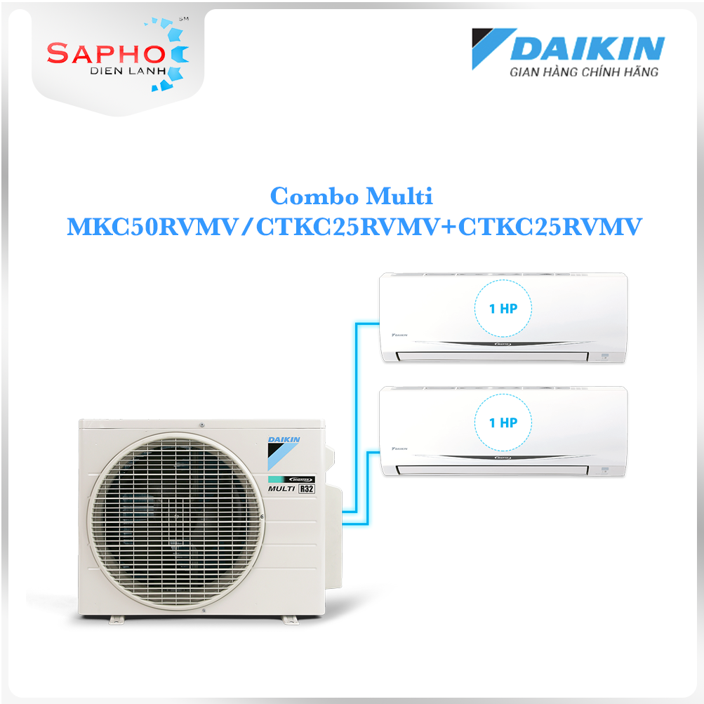 ✨Hệ Thống Máy Lạnh Điều Hoà Multi S Daikin Inverter Combo MKC50RVMV/CTKC25RVMV+CTKC25RVMV Gas R32 Treo Tường 1 Chiều Lạnh Hàng Chính Hãng- chỉ giao tại HCM