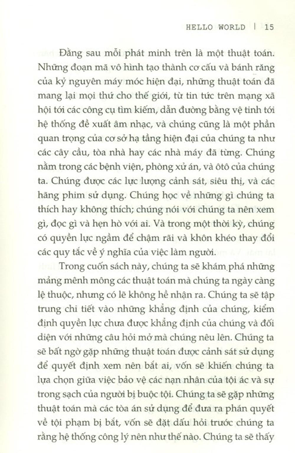 Cuốn sách này khám phá những mảng mênh mông nơi các thuật toán đang len lỏi vào nhiều khía cạnh của đời sống xã hội, chính trị, kinh tế của con người. Thuật toán được cảnh sát sử dụng để quyết định xem nên bắt ai. Thuật toán được các tòa án sử dụng để đưa ra phán quyết. Thuật toán được các bác sĩ dùng để bác bỏ chẩn đoán của chính họ. Thuật toán cân đo đong đếm biểu cảm của con người. Thuật toán có sức mạnh phá hoại ngầm với các hệ thống nhà nước dân chủ
