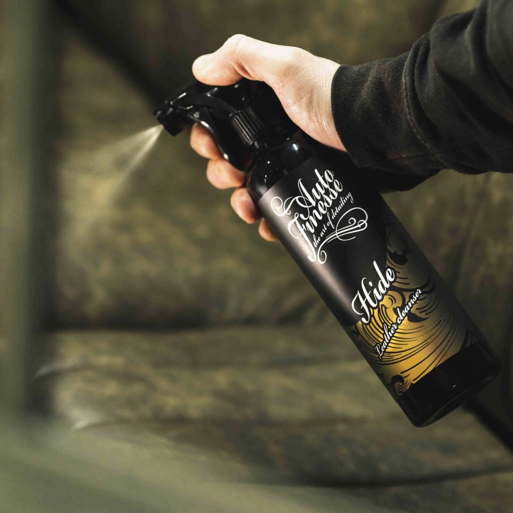 Auto Finesse Hide Leather Cleanser là chất tẩy rửa dịu nhẹ, dựa trên glycerin, được tinh chế đặc biệt để loại bỏ bụi bẩn bám trên các chất liệu da hiện đại một cách an toàn. Sử dụng tốt trên tất cả các loại da hoàn thiện, bán anilin và anilin (còn được gọi là ‘Nappa’, không tráng phủ hoặc tự nhiên.). Hide Leather Cleanser nhanh chóng thâm nhập vào các lỗ trên bề mặt của vật liệu, hút sạch bụi bẩn, vết bẩn và dầu ăn sâu bên dưới lớp da của ghế. Hide Leather Cleanser thậm chí có thể loại bỏ vết thuốc nhuộm trên quần jean, vết xước trên giày và các vết bẩn cứng đầu khác trên ghế da cao cấp.