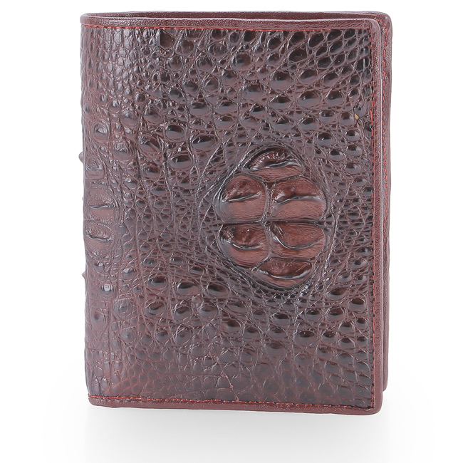Ví/Bóp nam Huy Hoàng da bò vân cá sấu màu nâu đỏ 2148