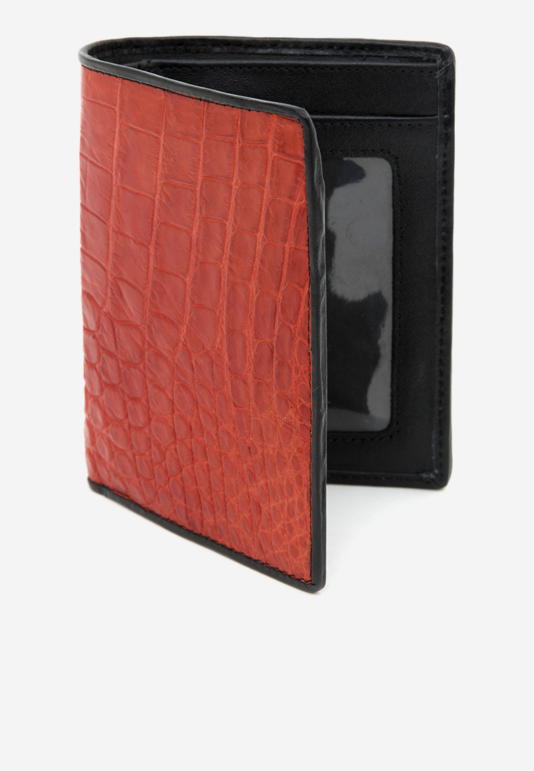✨HJ2277 - Bóp nam Huy Hoàng da cá sấu kiểu đứng màu đỏ