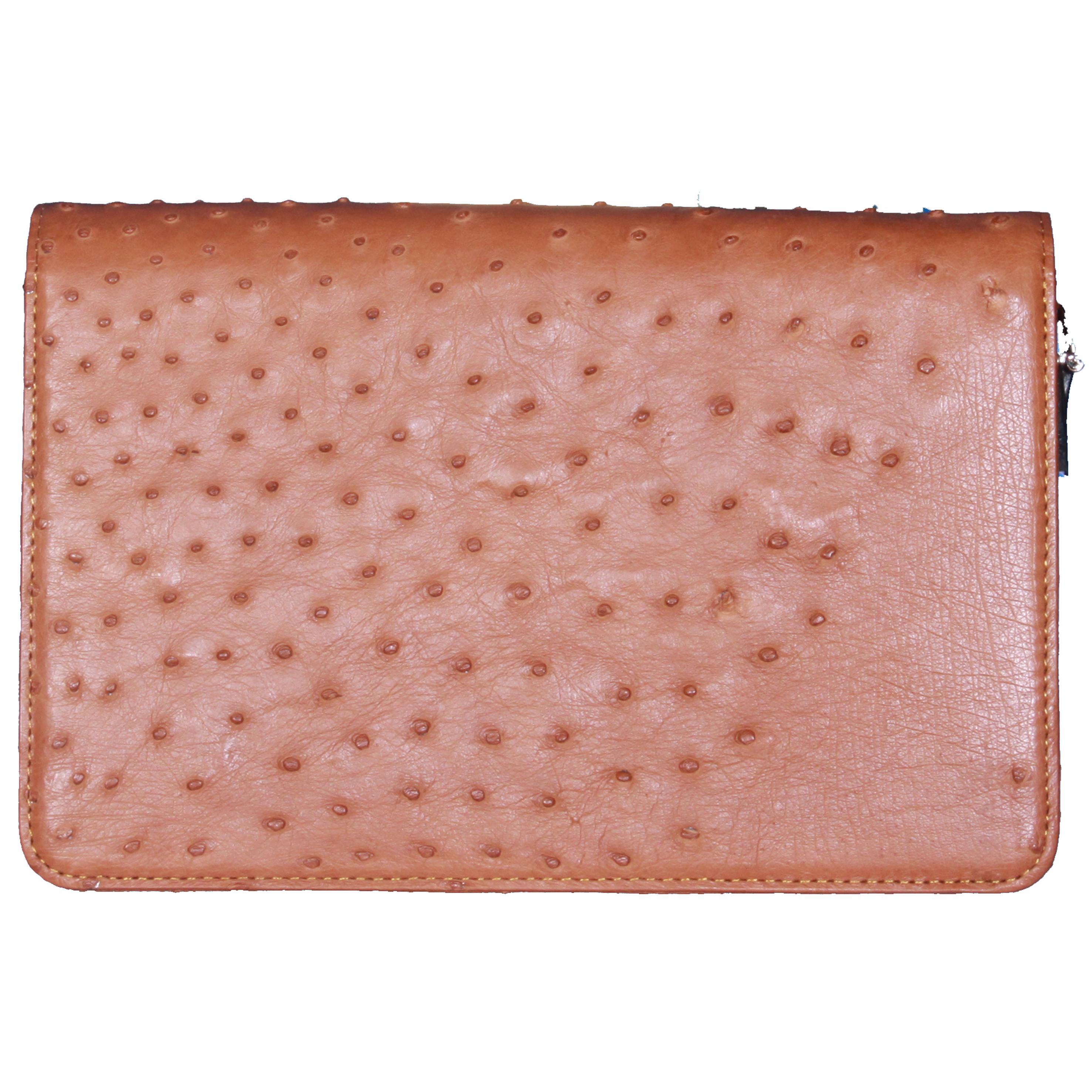 Bóp/Ví da đà điểu Huy Hoàng da bụng kiểu đứng màu nâu đất, nâu đỏ, đen, vàng bò 2408-09-10-18