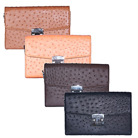 Túi cầm tay nữ Huy Hoàng da đà điểu màu đen, nâu đất, vàng bò, nâu đỏ 6451-52-53-54-55-56