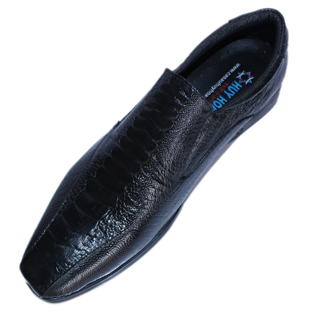 Giày tây nam Huy Hoàng da bò vân đà điểu màu đen 7795