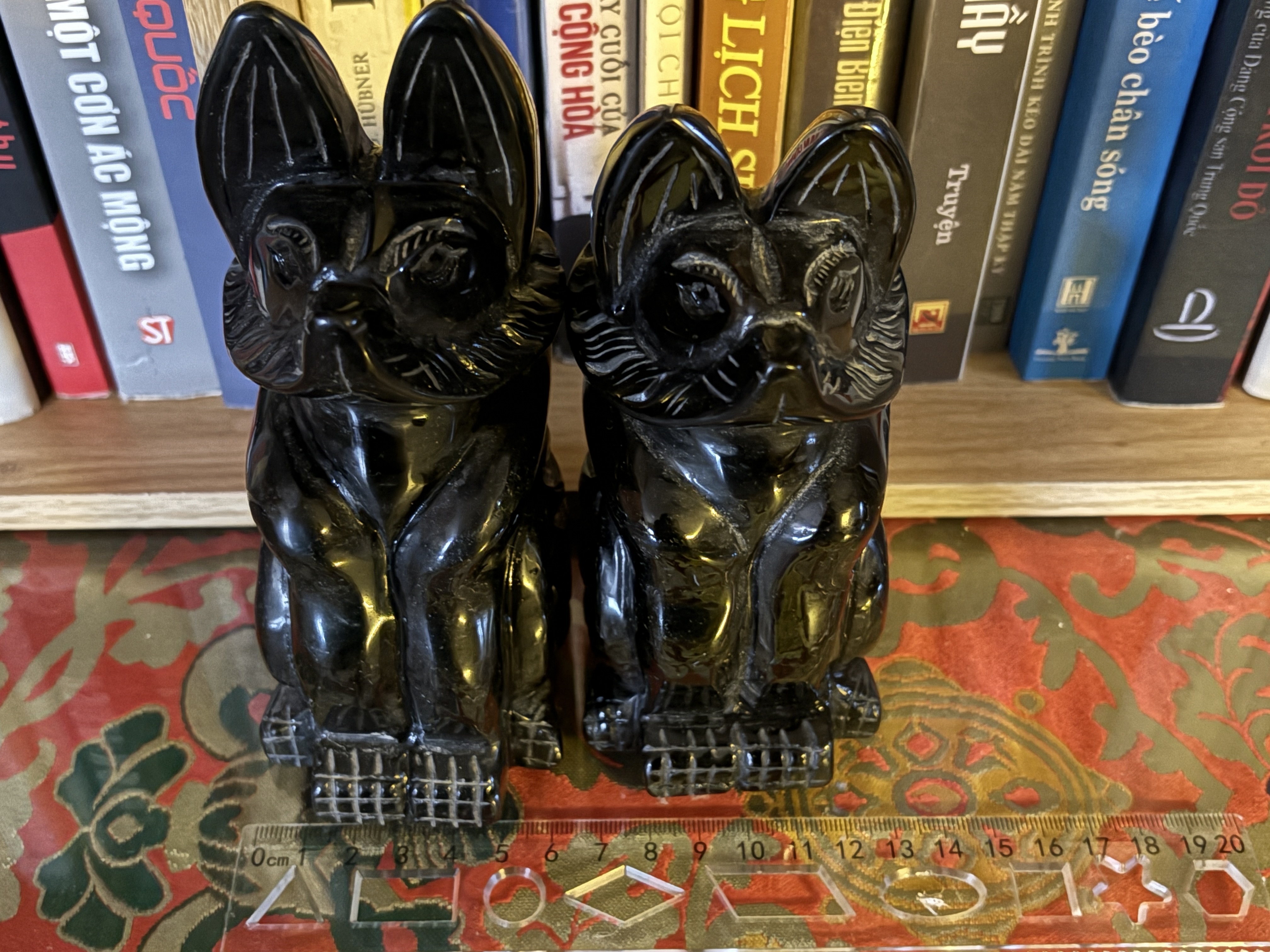 Tượng Hồ ly 9 đuôi chạm khắc tinh sảo bằng đá tự nhiên Obsidian. Kích thước 14cm và 16cm Hồ ly phong thủy - biểu tượng may mắn trong tình yêu Tượng