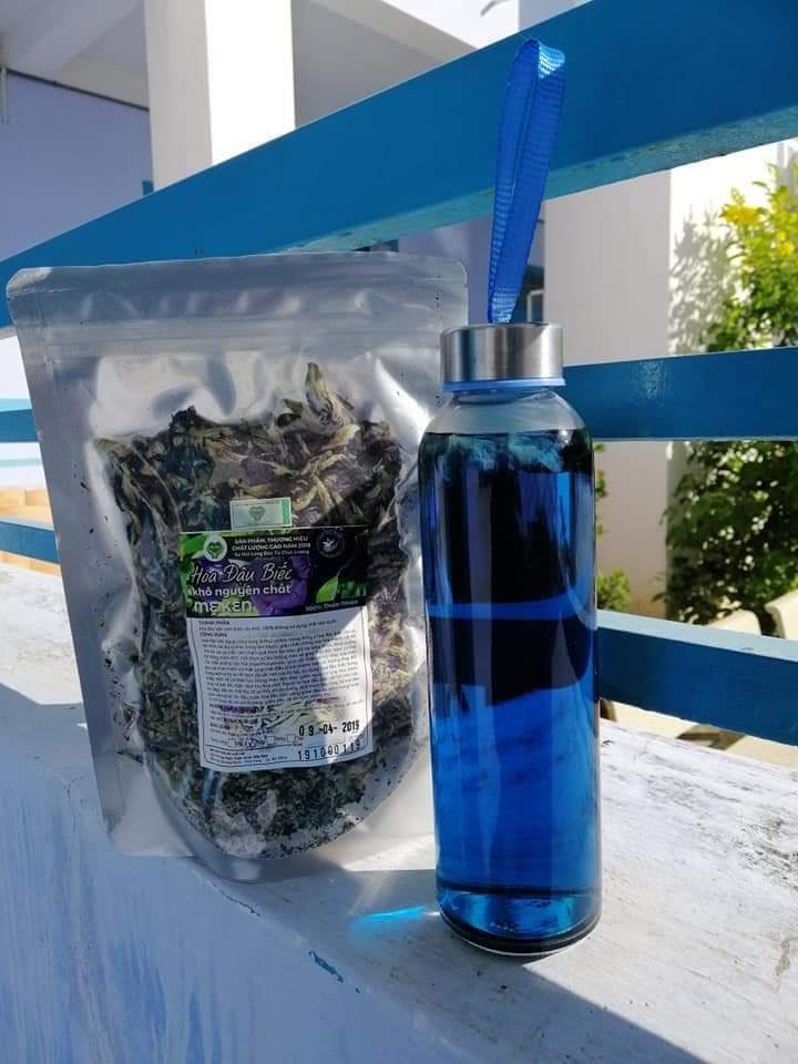 HOA ĐẬU BIẾC KHÔ NGUYÊN CHẤT MẸ KEN (50g)-loại hoa cánh kép không phải hoa đơn. Thành phần: hoa đậu biếc tươi được sấy khô. 100% không sử dụng chất bảo quản Công dụng: Hoa đậu biếc ngoài công dụng là thực phẩm, trong đông y hoa đậu biếc còn có rất nhiều tác dụng khác trong làm thuốc, giàu chất chống oxy hóa mạnh, rất tốt cho da, tóc và mắt. Làm chậm quá trình lão hóa, giữ da sáng khỏe, tăng cường hệ thống miễn dịch, kích thích sự lưu thông máu và giúp thải độc toàn cơ thể. Các chất chống oxy hóa proanthocyanidin giúp cải thiện dòng chảy của máu qua các mao mạch của mắt, giúp mắt điều chỉnh nhanh hơn với những thay đổi trong ánh sáng và cải thiện độ sắc nét của thị lực, sử dụng hoa đậu biếc trong nhiều năm sẽ cải thiện lưu thông máu đến đầu, giảm nguy cơ ung thư, tránh rụng và bạc tóc, ngăn chặn tóc hoa râm. Ngoài ra hoa đậu biếc rất tốt cho việc làm đẹp, nấu ăn, thải độc tố cơ thể, nhuận tràng, kích thích tiêu hoá, hỗ trợ làm giảm viêm phổi, ho. Nấu nước hoa đậu biếc uống có thể giảm đau do viêm họng hoặc có thể dùng để rửa vết thương, giảm phù nề và ngăn mưng mủ. Hướng dẫn sử dụng: Hãm từ 5 - 6 bông với nước sôi để uống mỗi ngày hoặc còn dùng để nấu xôi, nấu cơm, làm bánh, làm trân châu,… Bảo quản: Nơi khô ráo, thoáng mát và tránh ẩm. Trọng lượng: 50gr HSD: 24 tháng