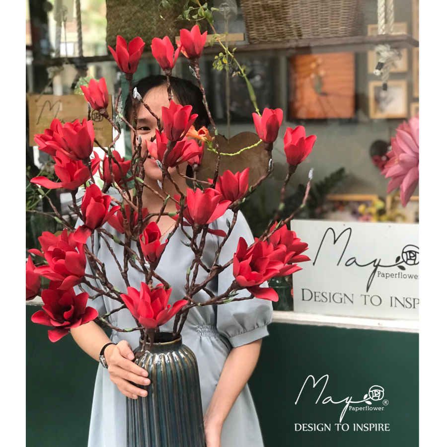 Hoa mộc lan có ý nghĩa tốt đẹp nên được nhiều khách hàng yêu thích cộng thêm cành hoa làm handmade từ thép dài nên dễ dàng uốn bẻ cong tạo thế cho phù hợp với nhiều bình hoa.