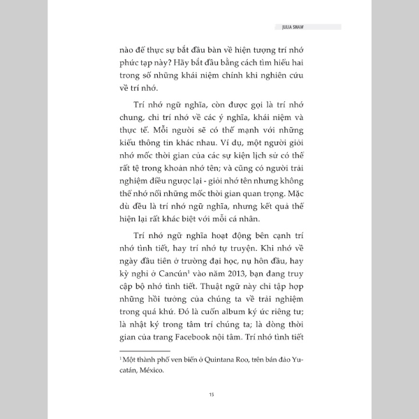 Tiến sĩ Julia Shaw là một giảng viên và nhà nghiên cứu kỳ cựu của Trường Luật và Khoa học Xã hội, Đại học London South Bank, đồng thời là một trong số ít chuyên gia trên thế giới thực hiện nghiên cứu về những sai sót trí nhớ phức tạp liên quan đến các sự kiện cảm xúc cá nhân - hay còn gọi là những “ký ức sống động nhưng hoàn toàn không có thật”.