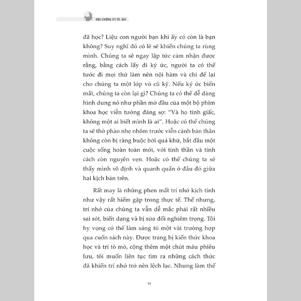 Lôi cuốn và đầy bất ngờ, Hội chứng ký ức giả chính là một người bạn đồng hành trên con đường khám phá bản thân chúng ta dựa trên cơ sở khoa học về trí nhớ. Cuốn sách này sẽ giúp chúng ta hiểu hơn về cách ghi nhớ của não bộ, về tính đúng đắn của những ký ức mà ta sở hữu, khiến bạn phải đặt câu hỏi rằng bạn thực sự hiểu bản thân mình đến mức nào.