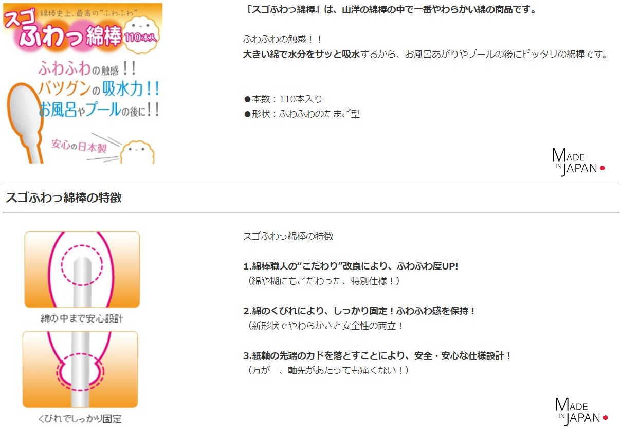 HỘP 110 TĂM BÔNG NGOÁY TAI MỀM KHÁNG KHUẨN, AN TOÀN SANYO - HÀNG NỘI ĐỊA NHẬT BẢN (Sản phẩm được nhập khẩu chính hãng từ Nhật Bản) ■ Xuất xứ: Nhật Bản / MADE IN