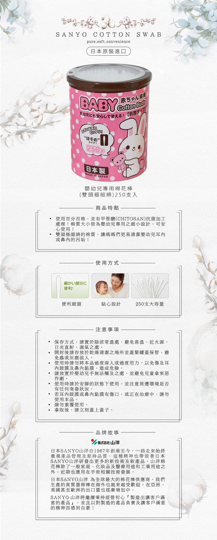 Hộp 150 tăm bông ngoáy tai kháng khuẩn Sanyo 100% Bông gòn tự nhiên mềm mại + Sản phẩm được nhập khẩu trực tiếp từ thị trường Nhật Bản chính hãng 100%. + Đảm bảo
