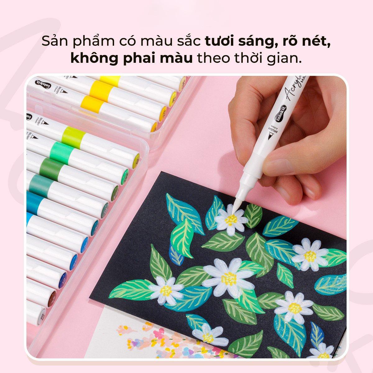 Hộp 24 Bút Lông Màu Acrylic Markers 2 Đầu - Colokit ACM-C002 với thiết kế đầu BROAD tiện lợi và đầu BRUSH linh hoạt đáp ứng được đa dạng nhu cầu sử dụng. Bút màu