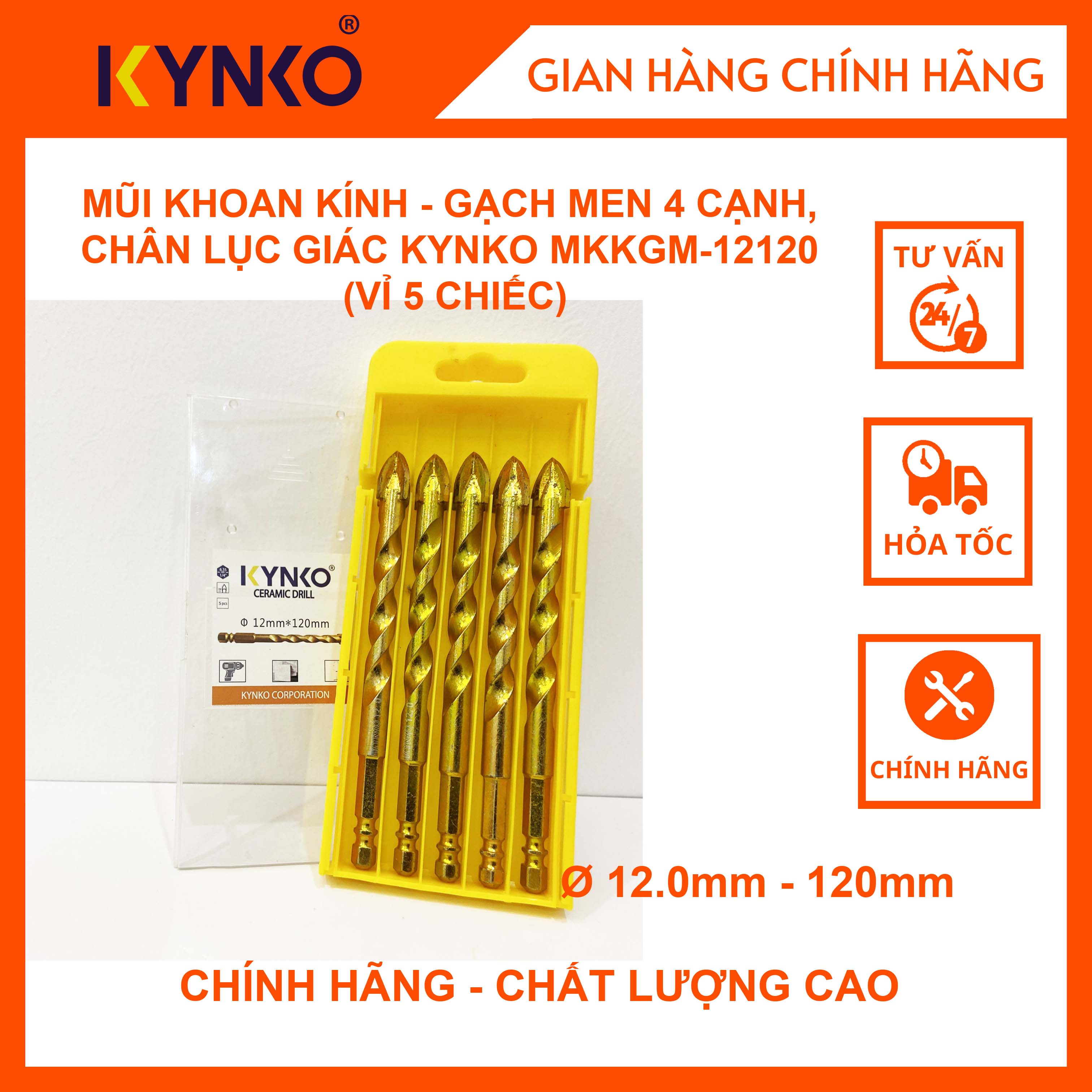✨(HỘP 5 MŨI) MŨI KHOAN KÍNH - GẠCH MEN 4 CẠNH, CHÂN LỤC GIÁC KYNKO MKKGM- 12120 CHÍNH HÃNG GIÁ TỐT đường kính phi 12mm