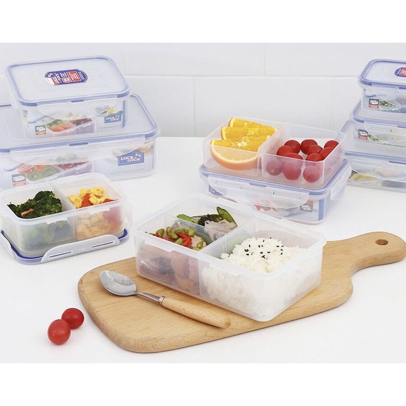 ✨Hộp Bảo Quản Thực Phẩm Lock&Lock Chia 3 Ngăn Có Thể Nhấc Rời, Chất Liệu Nhựa PP, Nắp Có Ron Silicone - 800ml- 1000ml -2600ml