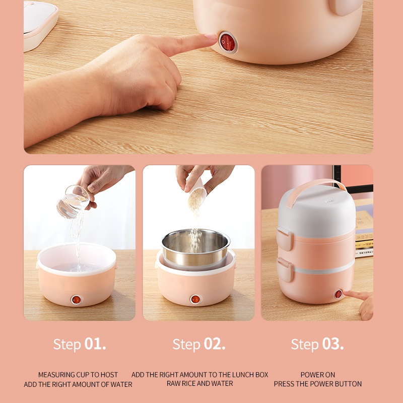 Hộp Cơm Điện Cặp Lồng Điện Hâm Cơm Tự Động 3 Tầng PS-103 - Màu Ngẫu Nhiên - Hàng Chính Hãng: hâm nóng, nấu, hấp, luộc, tại nơi làm việc hoặc nơi không tiện dùng bếp để hâm nóng thức ăn