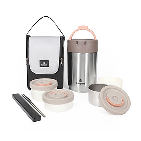 - Hộp cơm giữ nhiệt 3 ngăn Kalpen I1 màu sắc trang nhã, hiện đại. Thiết kế tiện ích với 3 ngăn đựng tách biệt gồm 1 hộp nhỏ 260ml và 2 hộp lớn hơn dung tích 420ml để đựng cơm, canh và đồ ăn. Không chỉ phù hợp để mang cơm đi làm mà còn có thể sử dụng để đựng chè, cháo, đồ ăn dặm cho bé khi đi cắm trại, picnic, dã ngoại…