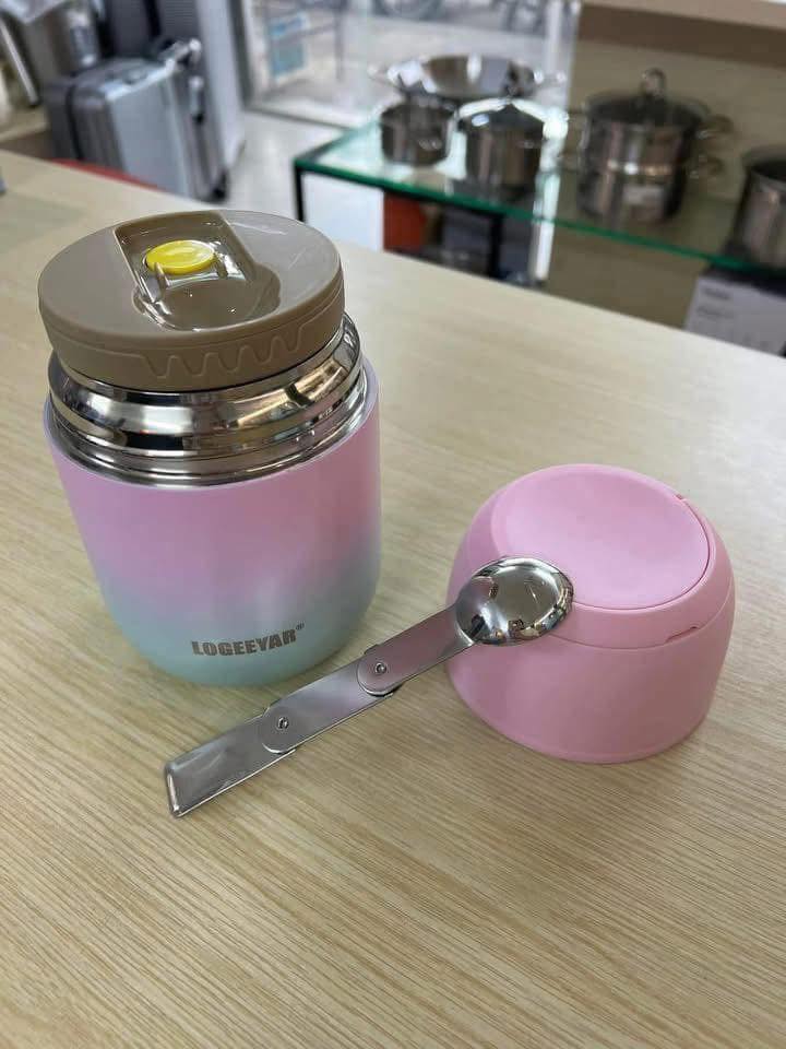 Thoải mái hơn: Miệng bình cực lớn 7,1 cm có thể giúp bạn no, ăn và dọn dẹp. Hộp cơm cách nhiệt này có 2 thìa gấp tiện dụng bên trong và tay cầm phía trên dễ dàng mang đi, nắp hộp còn có thể dùng làm bát ăn