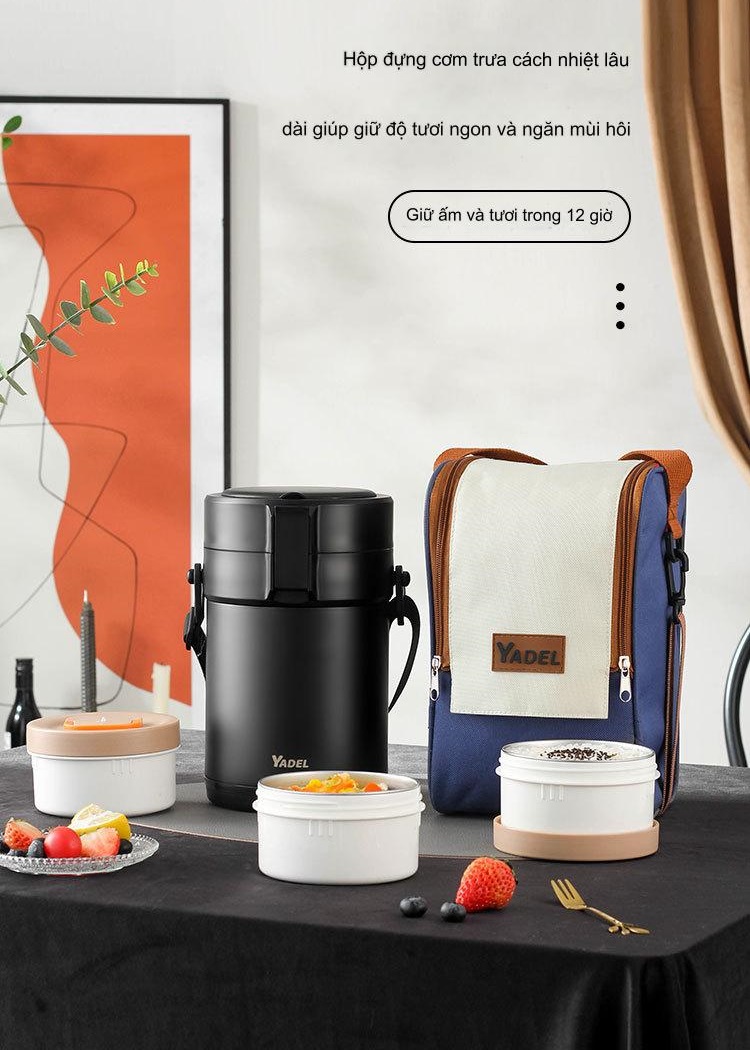 Hộp Cơm Giữ Nhiệt YADEL Inox 304 Chống Tràn, Cách Nhiệt 6 Lớp, Chống Bỏng 2 Lớp, Giữ nhiệt tới 12h