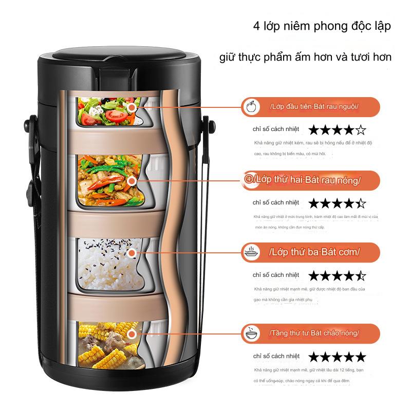 Bộ Hộp Cơm Giữ Nhiệt - dung tích 1.6L nặng 1.1kg - Bộ Hộp Cơm Giữ Nhiệt - (.) sản xuất tại Hàn Quốc. - Bộ Hộp Cơm Giữ Nhiệt - chất liệu thép không