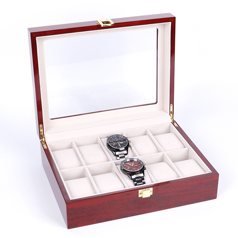 ✨Hộp Đồng Hồ 10 Chiếc SAIKE SAIKE S101 Vỏ Gỗ Sơn Phủ Màu Đỏ Vân Gỗ