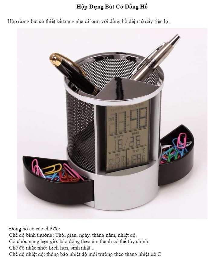 - Hộp đựng bút có đồng hồ, lịch kỹ thuật số đa năng - hàng chính hãng - - Hộp đựng bút, dụng cụ văn phòng trang nhã lịch lãm. - Chế độ bình