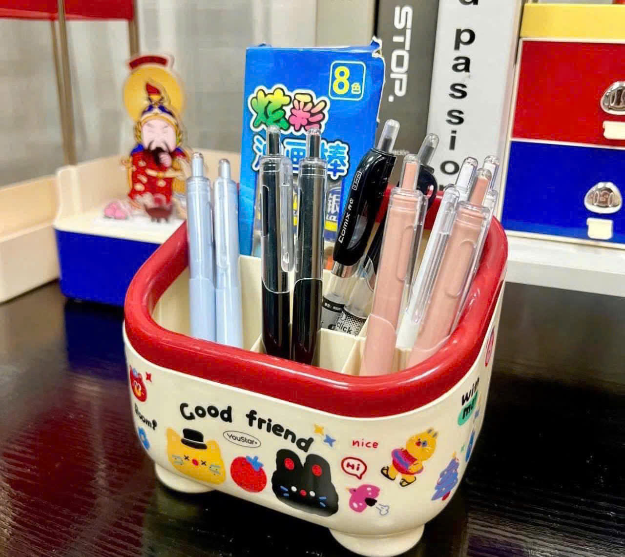 • Công dụng: Đựng bút, bút chì, thước, ghim, kẹp giấy, và các vật dụng văn phòng phẩm khác. Lợi ích khi sử dụng: