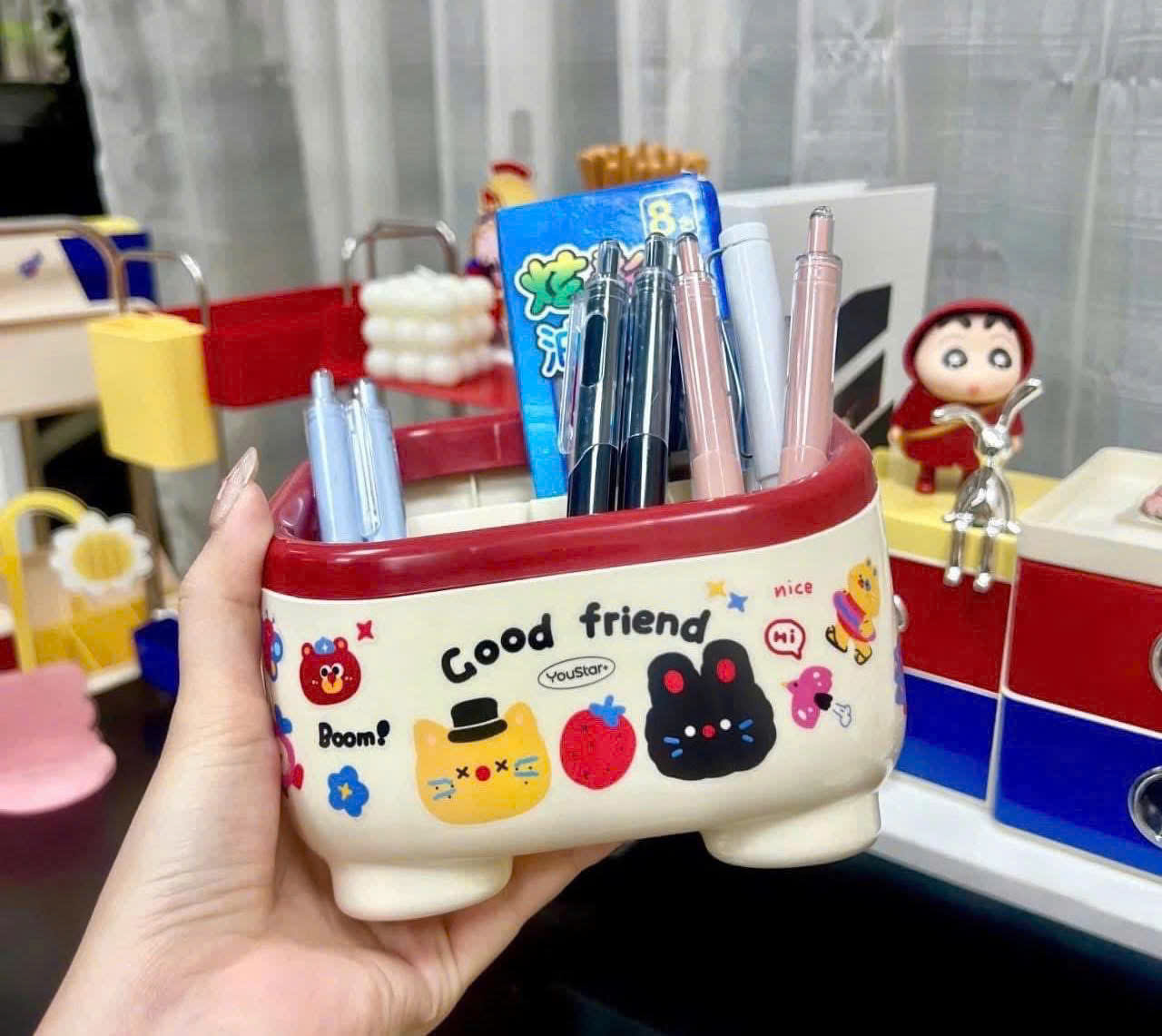 • Tăng tính sáng tạo: Với thiết kế hoạt hình vui nhộn, hộp đựng bút sẽ tạo điểm nhấn thú vị và mang lại cảm giác vui tươi, sáng tạo khi làm việc.