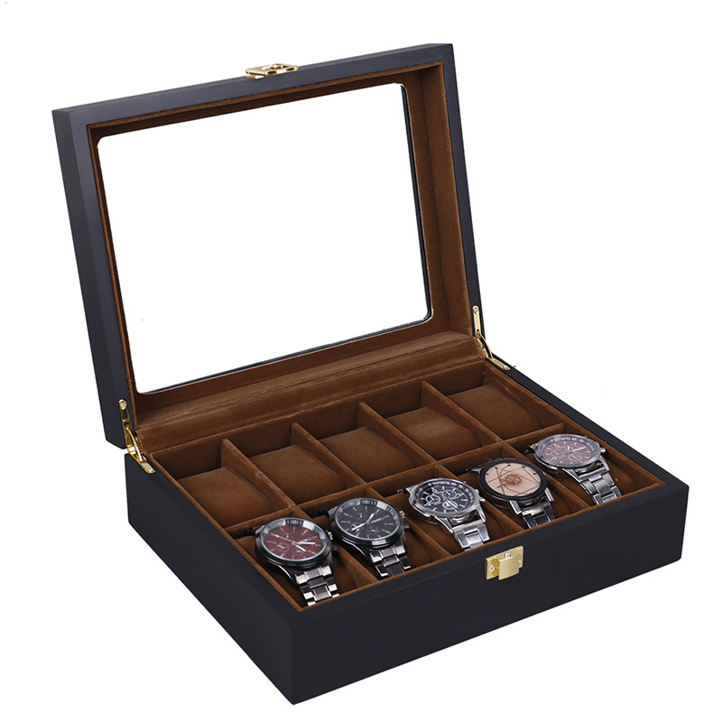 ✨Hộp Đựng Đồng Hồ 10 Cái SAIKE SAIKE S100 Vỏ Gỗ Đen Lót Nhung Màu Nâu