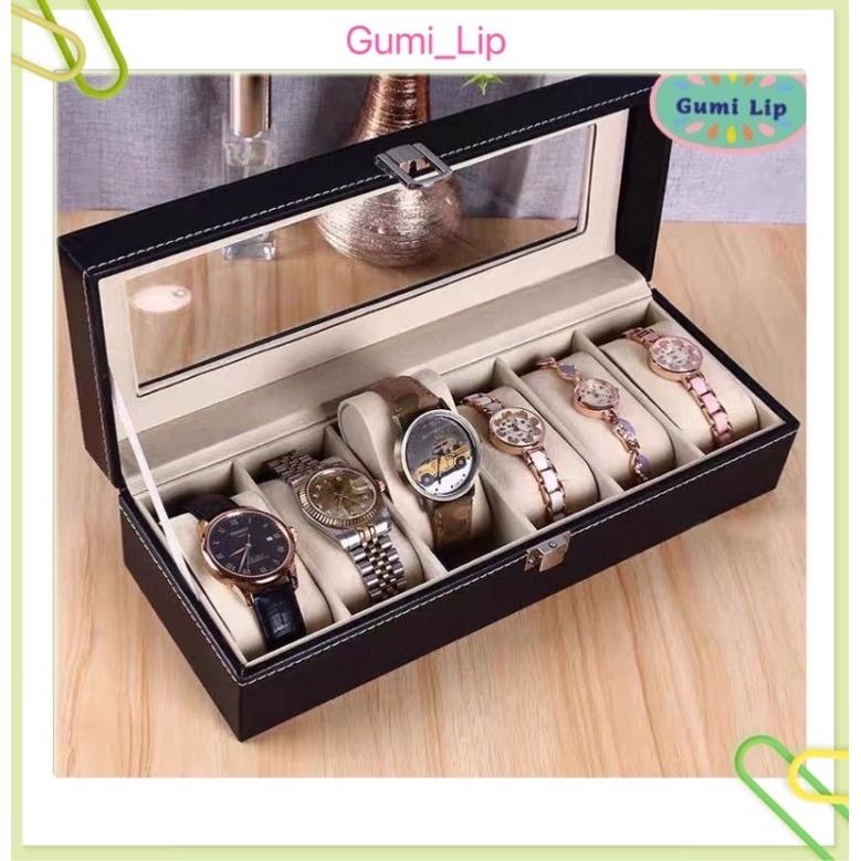 Hộp Đựng Đồng Hồ 6 Ngăn Vỏ Da Màu Vân Gỗ - Mã DH6DN