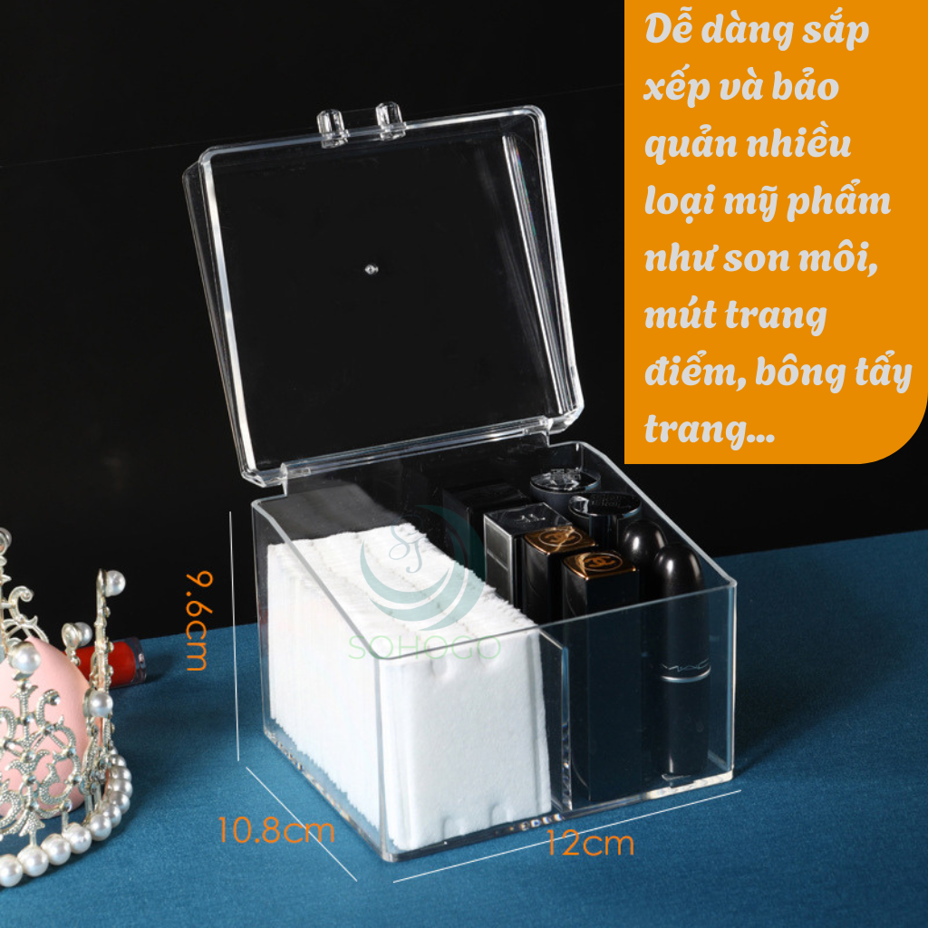 ✨Hộp Đựng Mỹ Phẩm Đa Năng Trong Suốt- Hộp Nhựa Trong Đựng Son, Mút Trang Điểm, Bông Tẩy Trang- Hộp Đựng Mỹ Phẩm Có Nắp Sang Trọng- Hộp Trang Điểm Mini Gọn Gàng- Hộp Đựng Đồ Makeup Chia Ngăn Tiện Lợi