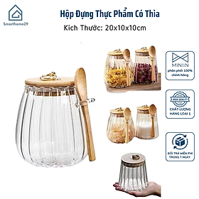 Hộp Đựng Thực Phẩm Có Thìa, Bảo Quản Nhà Bếp, Nắp Gỗ Bền Chống Ẩm, Nắp Thủy Tinh Kín Khí - Hộp Hạt Cà Phê Đậu