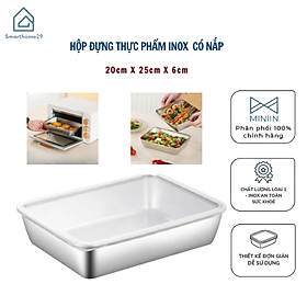 Hộp Đựng Thực Phẩm Inox Để Tủ Lạnh Có Nắp Đậy Đa Năng Tiện Lợi- Có 2 Size 13.5x10.5x5.8 cm và 20x5,5x25cm - Khay Inox 304 Chống Gỉ - Hàng Chính Hãng MINIIN Hộp Đựng