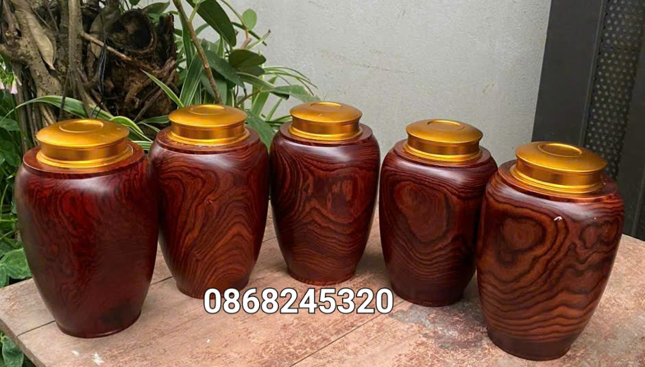 Hộp trà tròn gỗ trắc dây. Cao 20cm. LH: 0983432462