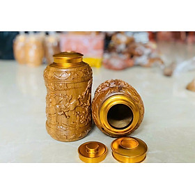 _ Hộp đựng chè trà thân khắc rồng được làm bằng chất liệu gỗ bách xanh thơm phức liền khối tự nhiên 100% _ Kt cao 20 thân hộp tròn 11cm _ HỘP ĐỰNG TRÀ