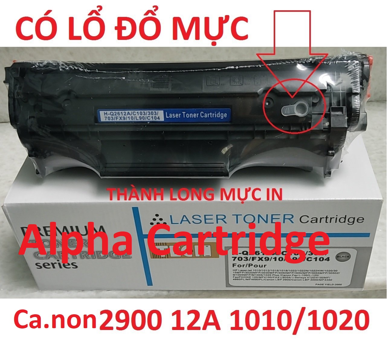 ✨Hộp mực 12A dành cho HP LaserJet 1010/1015/1020/3015/3020/3030/3050 Canon 2900/ L11121E Canon L120, MF4122, MF4150, MF4680, L140, L160, MF4270, MF4320d, MF4350d 3000 FX9 FX10 CÓ LỔ ĐỔ MỰC Hàng chính hãng Alpha Cartridge