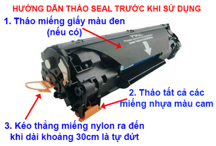 - Hộp mực 48A mới đã có sẵn mực, khách hàng chỉ cần tháo seal niêm phong là sử dụng được ngay.