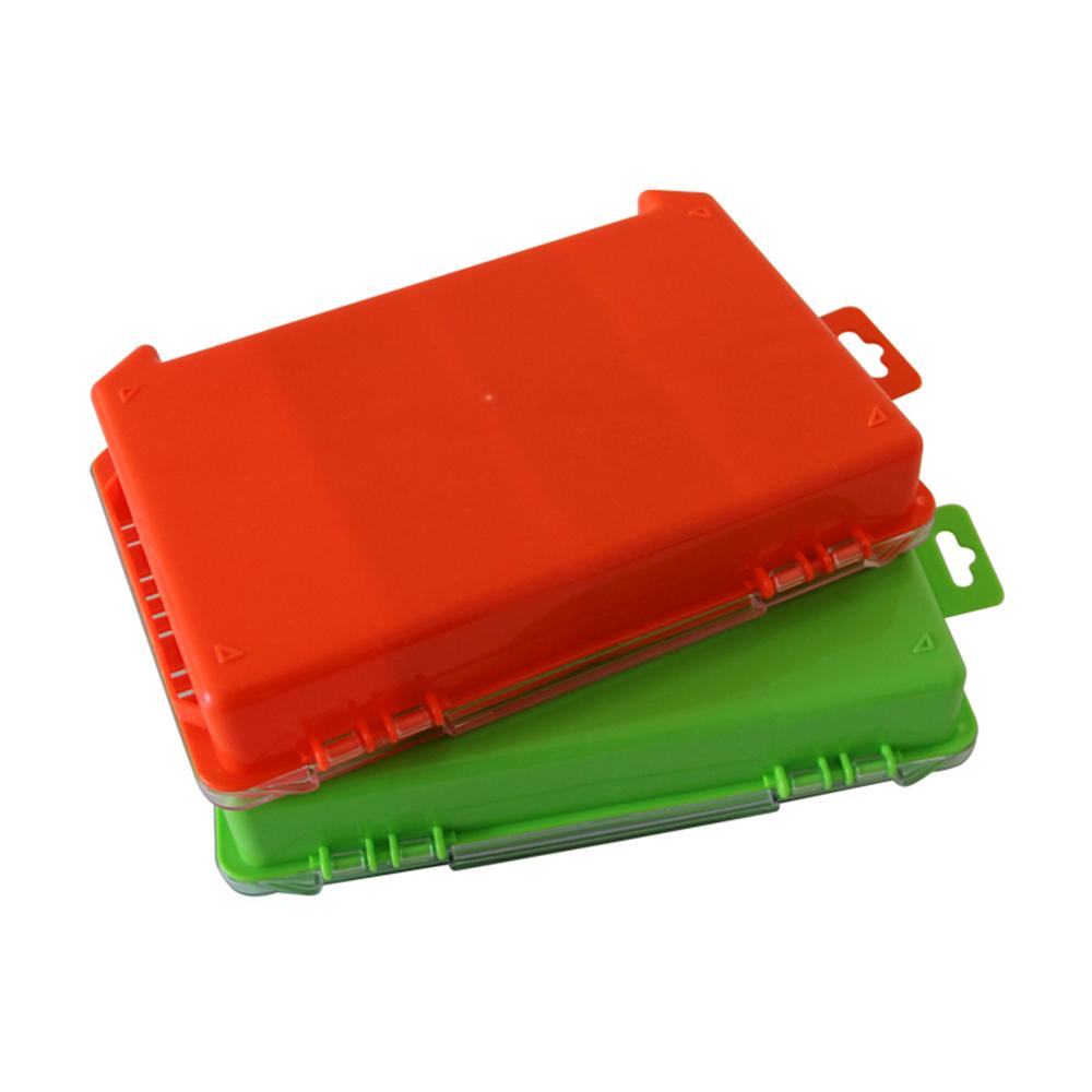 Double-sided fishing box helps keep your fishing accessories organized. Features: High-strength plastic material for durability. Double sided design keep your fishing accessories organized. Clear lids make the contents visible. Built-in drainage holes keep the box