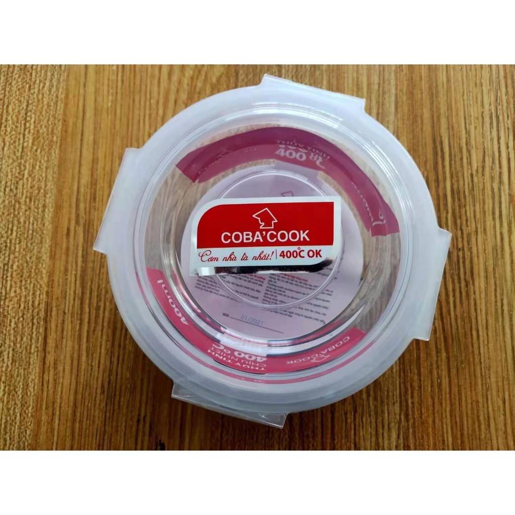 Bộ 2 hộp thủy tinh đựng thực phẩm chịu nhiệt COBA'COOK hình tròn dung tích 400ml - CCR42-1 - Chất liệu : Thủy tinh chịu nhiệt,nắp nhựa PP - Màu sắc : Trắng trong -