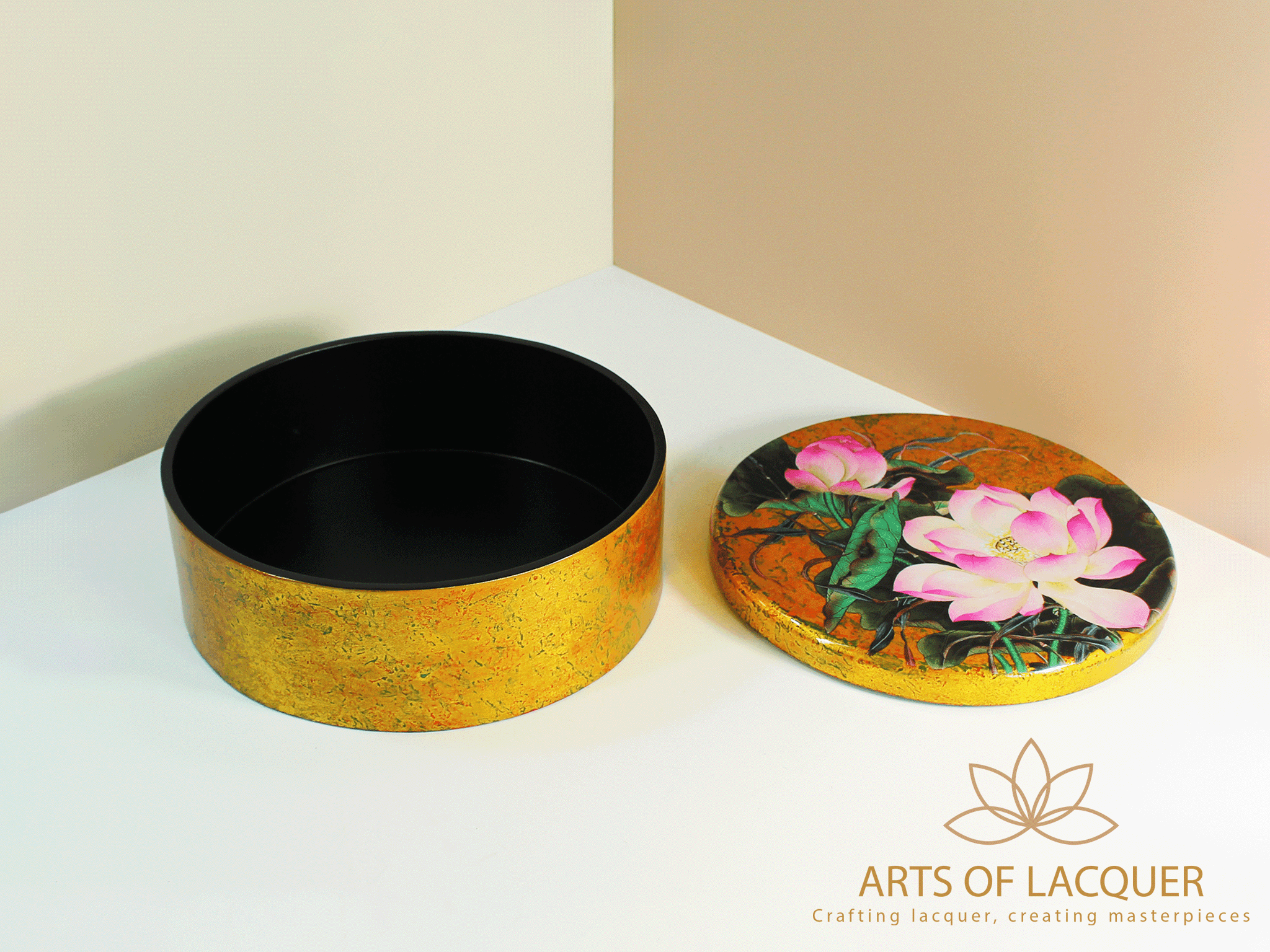 ✨Hộp Tròn Sơn Mài Hoa Sen Hồng Dát Vàng