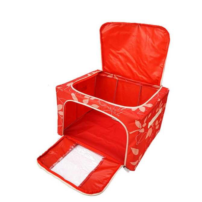- Chất liệu vải dù tráng cao su bền đẹp chống thấm rất tốt, khung kim loại chắc chắn, khóa kéo trên và khóa kéo ngang dễ dàng cất và lấy đồ bên trong mà không cần bới tung cả tủ đồ lên,- Chịu được tải trọng đồ phía trên, nên có thể xếp chồng được nhiều hộp lên nhau rất gọn gàng tiết kiệm diện tích,- Túi đựng chăn màn, quần áo khung inox được thiết kế hoa văn và màu sắc rất bắt mắt nên ngoài chức năng đựng đồ còn làm cho màu sắc trong không gian nhà bạn trở nên sinh động,- Có thể gấp gọn khi không sử dụng nên sẽ tiết kiệm diện tích lưu giữ. Chú ý: Màu sắc nhiều màu, giao màu ngẫu nhiên theo từng đợt hàng về!