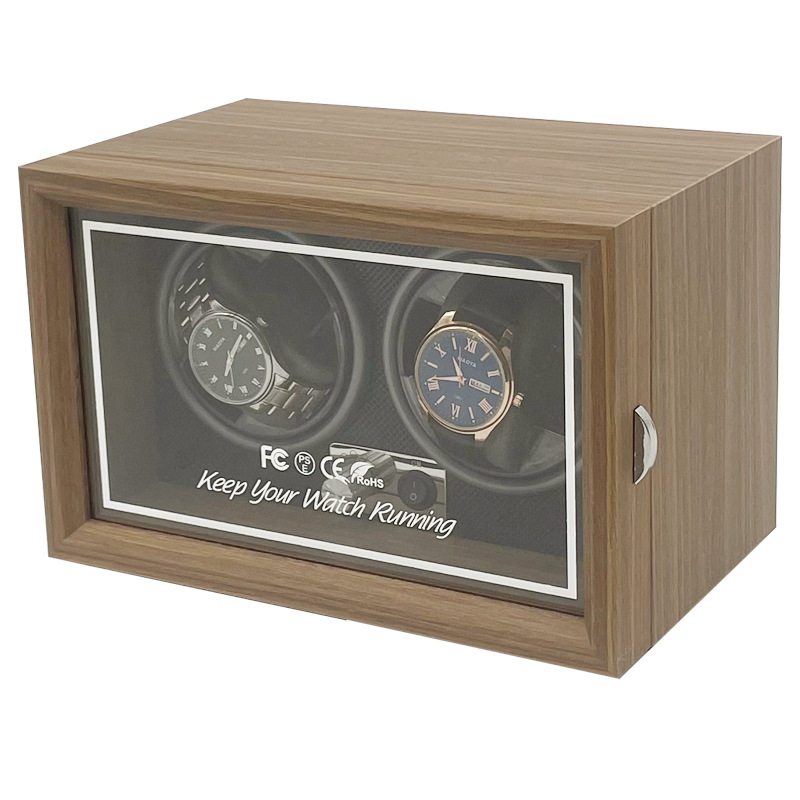Hộp Xoay Đồng Hồ Cơ 2 Ngăn SAIKE S2005 Vỏ Gỗ Có Đèn LED - Tủ Đồng Hồ Quay Cao Cấp