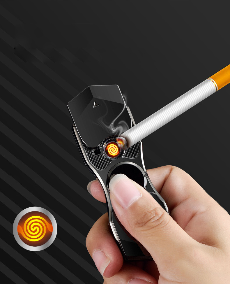 #HộtQuẹt Bật Lửa Điện Kiêm Con Quay Spinner Đèn Led Sạc USB Cao Cấp - Quà Tặng Ý Nghĩa