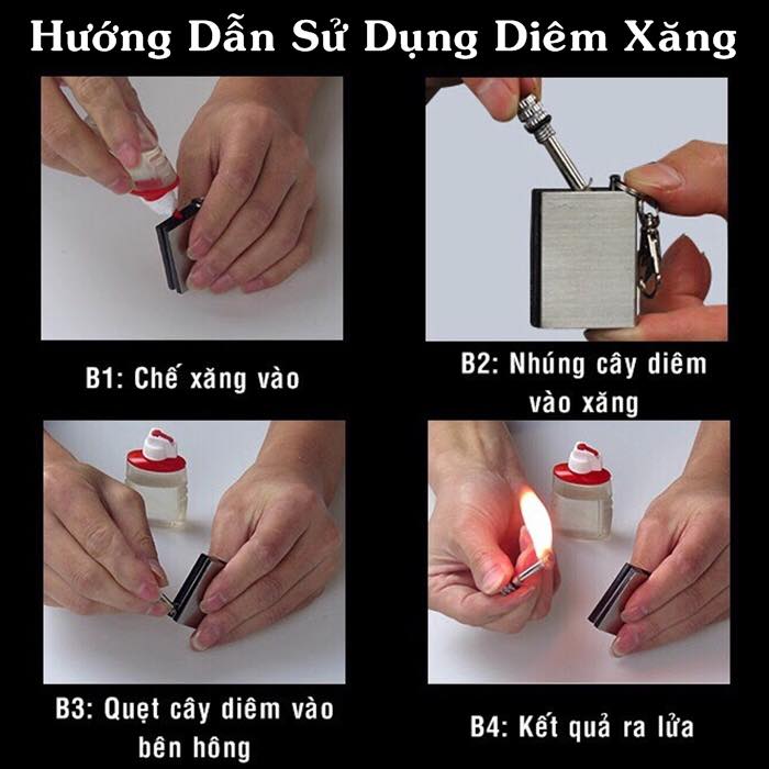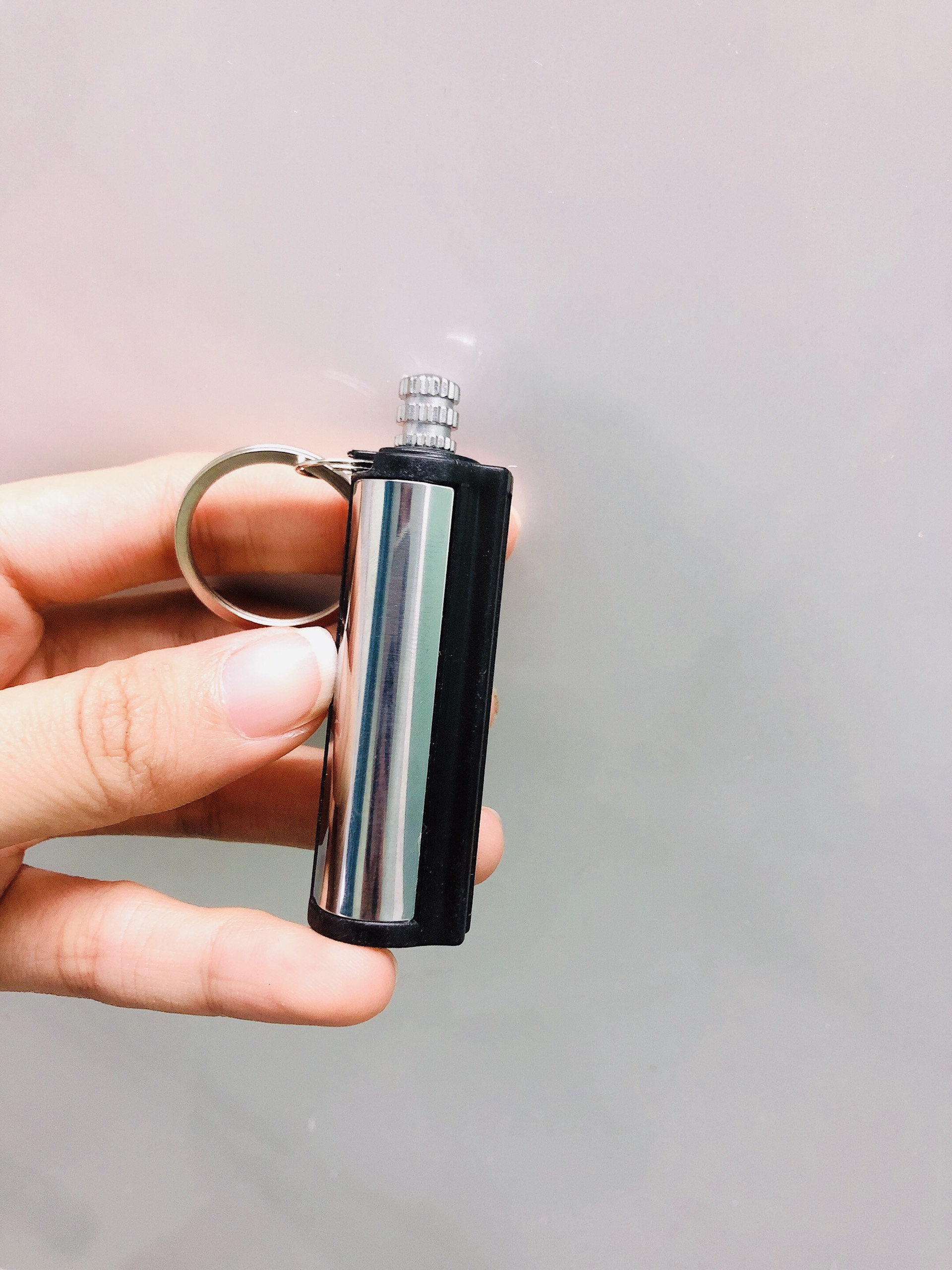 Mua tại TiktokHột quẹt bật lửa móc khóa diêm xăng sinh tồn hình Trụ Tròn - xài xăng