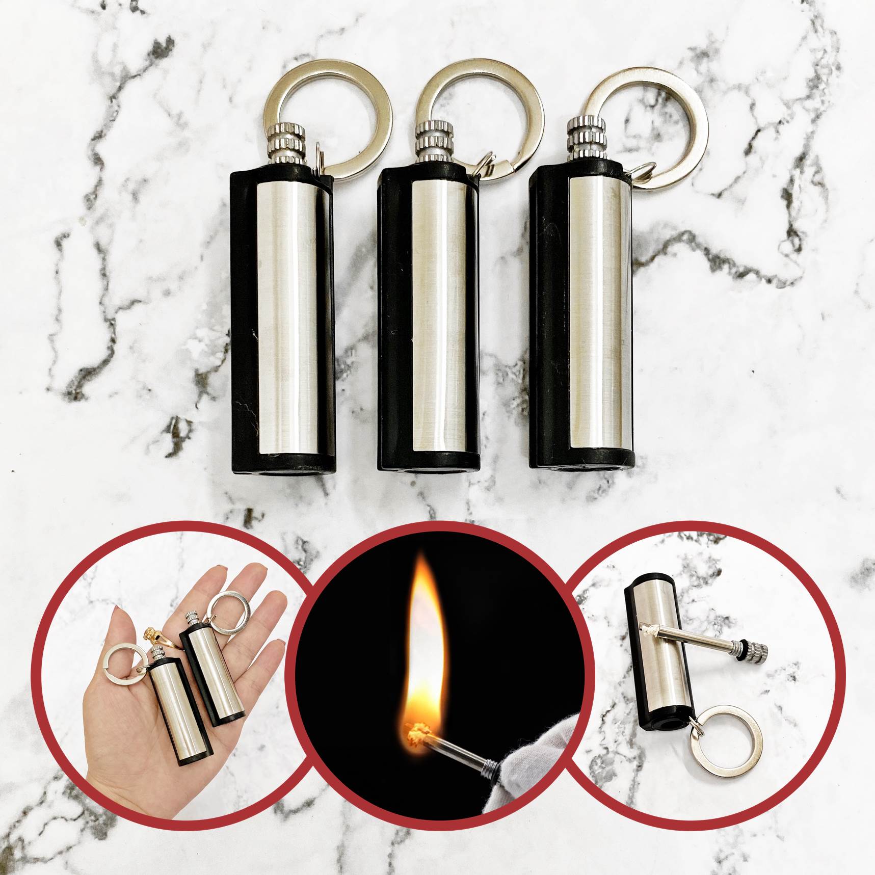 ✨Hột quẹt bật lửa móc khóa diêm xăng sinh tồn hình Trụ Tròn - xài xăng