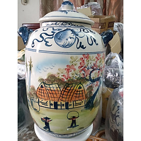 ✨Hũ đựng rượu gạo vẽ phong cảnh Bát Tràng loại 30L (hoa văn ngẫu nhiên)