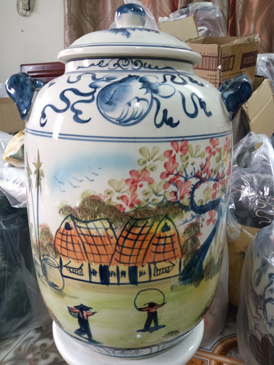 Hũ đựng rượu gạo vẽ phong cảnh Bát Tràng loại 30L (hoa văn ngẫu nhiên)Hũ đựng rượu gạo vẽ phong cảnh Bát Tràng loại 30L (hoa văn ngẫu nhiên)