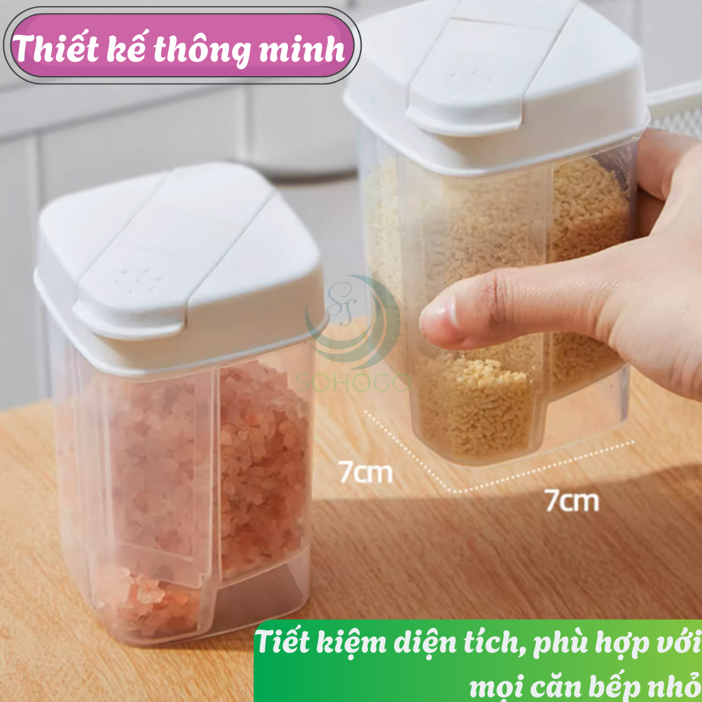 • 3 ngăn tiện dụng – đựng được nhiều loại gia vị khác nhau (muối, tiêu, bột nêm, mè, đường,...)