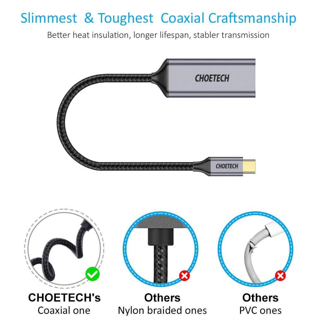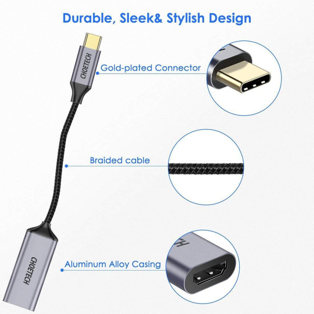 ✨Hub Chuyển Đổi USB Type C to HDMI CHOETECH HUB-H10 Độ Phân Giải 4K 60Hz, 1080P Cho Tivi/Laptop/Playstation/PC - Hàng Chính Hãng
