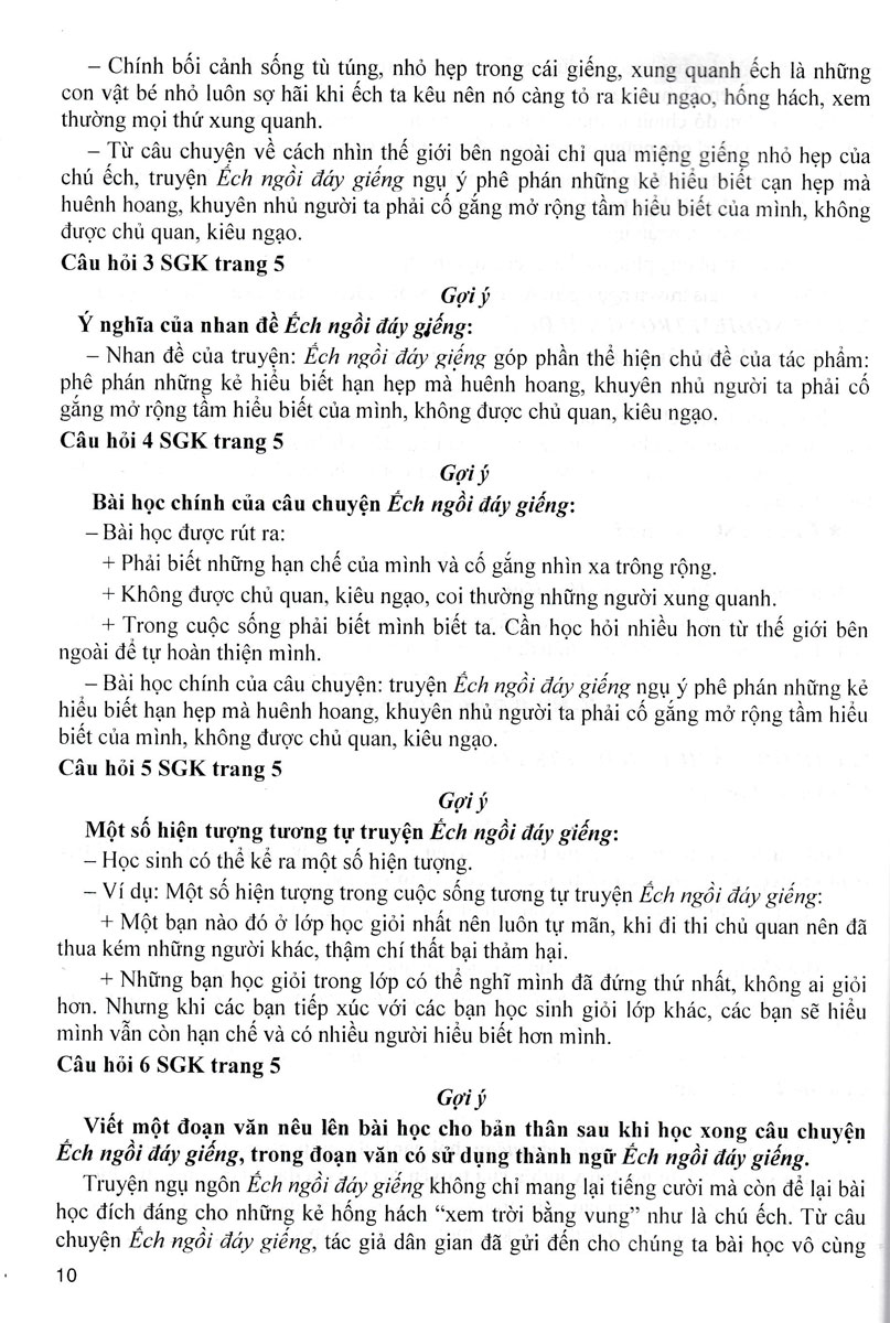 Ngoài việc hướng dẫn gợi ý trả lời các câu hỏi trong sách giáo khoa, cuốn sách còn giúp thầy cô và các em ôn tập, củng cố, mở rộng thêm vốn kiến thức môn Ngữ văn cũng như tự tin viết và nói được những kiểu văn bản: tự sự, nghị luận, thuyết minh và văn bản thông tin. Để sử dụng hiệu quả cuốn sách này, quý thầy cô và các em nên kết hợp chặt chẽ với bộ sách giáo khoa Cánh diều - Môn Ngữ văn của Nhà xuất bản Đại học Sư phạm Thành phố Hồ Chí Minh.
